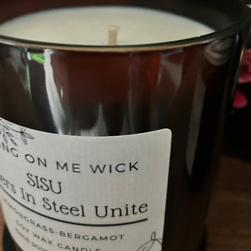 Illuminate your space with SISU - Sister's In Steel Candle, and let its uplifting fragrance serve as a constant reminder that you are capable, you are resilient, and you've got this!